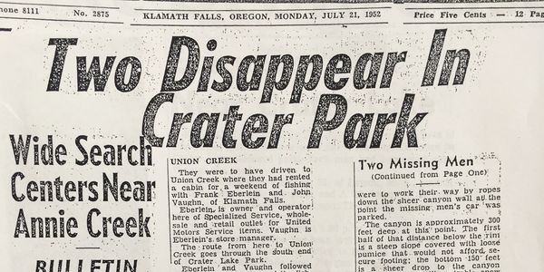 Lost to time for more than 70 years, the author (left) was able to find the location of the murders--deep in the woods inside Crater Lake National Park. In the book, he describes how he found it and the new information that lead to discovering the perpetrators. The perfect crime finally unraveled.